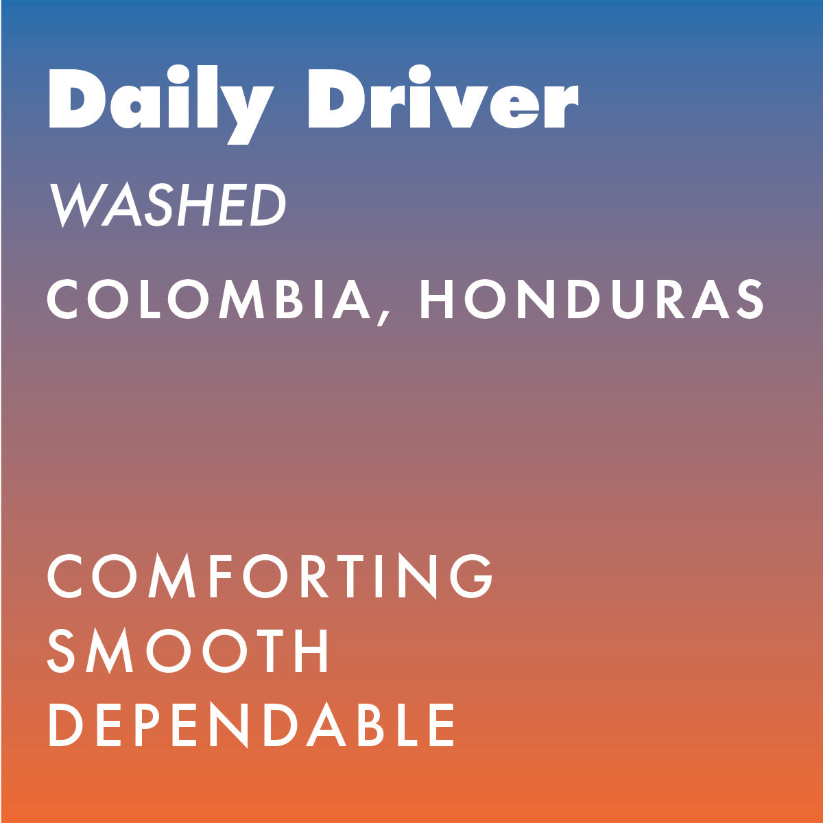 Formerly known as House Blend, Daily Driver is our coffee that you can rely on. Although the coffees may change throughout the season, this blend is roasted and ready to brew any time, any place, just like your favorite dependable method of transportation.